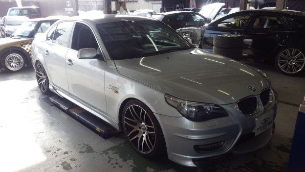 兵庫県西宮市、H様、2004y、BMW、5シリーズ、E60、車検整備とフロントスタビライザーリンク左右交換、リヤガイドアーム左右交換のレポートです!総額250,000円でした。有難うございましたm(__)m