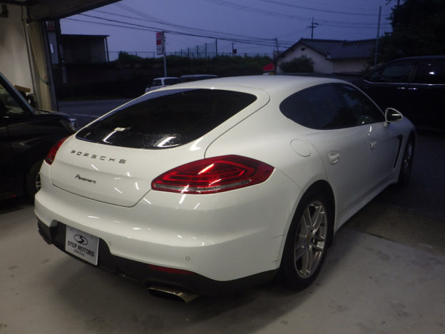 乾燥後、塗装準備(足付け、マスキング、脱脂、エアブロー)を行い、ベースコート(白)、トップコート(クリヤー)の順に塗装作業を行いました。